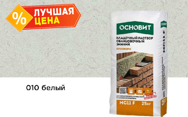 Кладочный раствор ОСНОВИТ БРИКФОРМ МС11 F зимний предназначен для кладки стен из облицовочного кирпича с водопоглощением до 12% с возможностью расшивки швов в момент укладки при температуре окружающей среды и основания от -10 до + 10°С.
