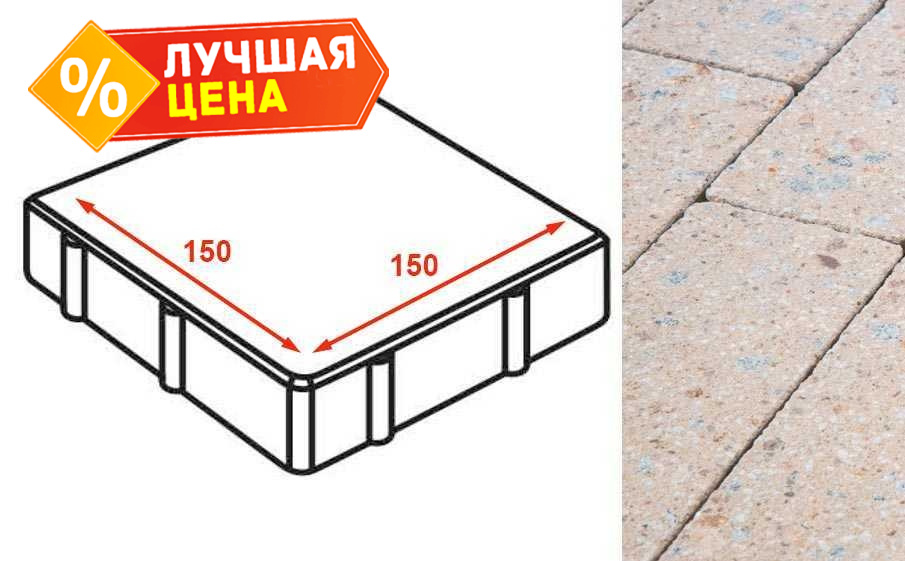 Плита тротуарная Готика Granite FINERRO, квадрат, Павловское 150х150х80 мм